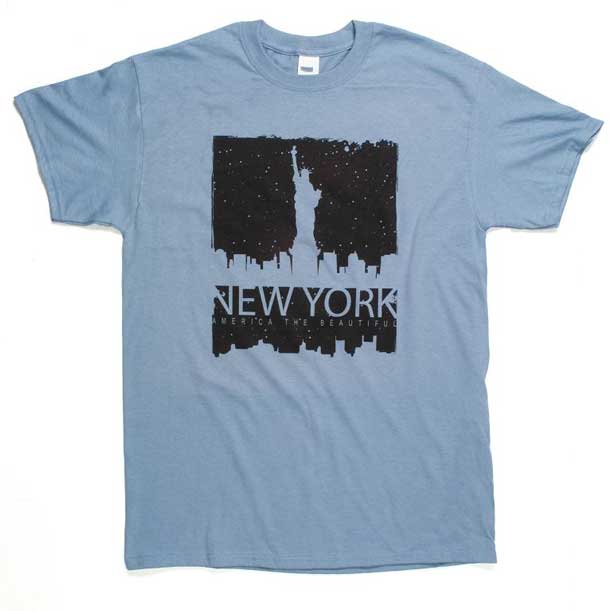 Surf Washed® Statue of Liberty New York City Skyline Women’s Cotton Graphic Crew T-Shirt: S Stone Blue