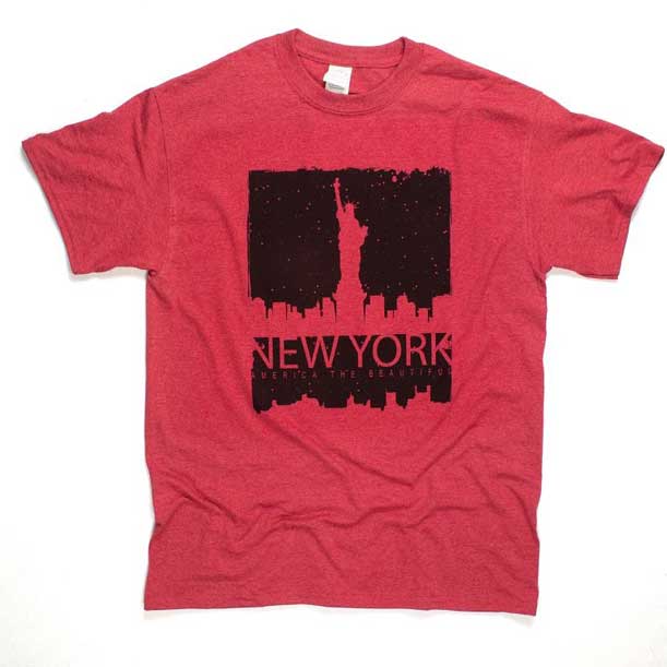 Surf Washed® Statue of Liberty New York City Skyline Women’s Cotton Graphic Crew T-Shirt: L Heather Cardinal