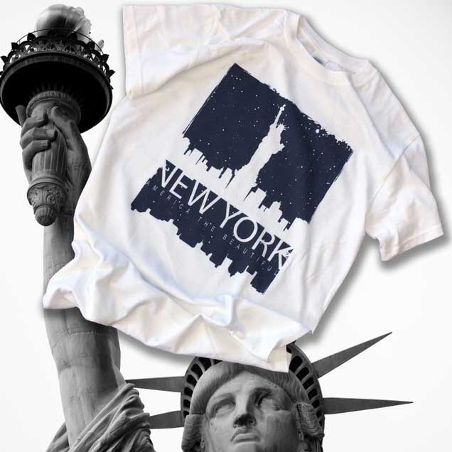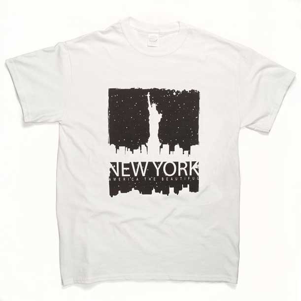 Surf Washed® Statue of Liberty New York City Skyline Women’s Cotton Graphic Crew T-Shirt: XL White