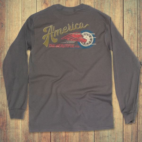 Surf Washed® Retro Motorcycle Winged Wheel Cotton Graphic Crew Shirt - Long Sleeve: Charcoal L