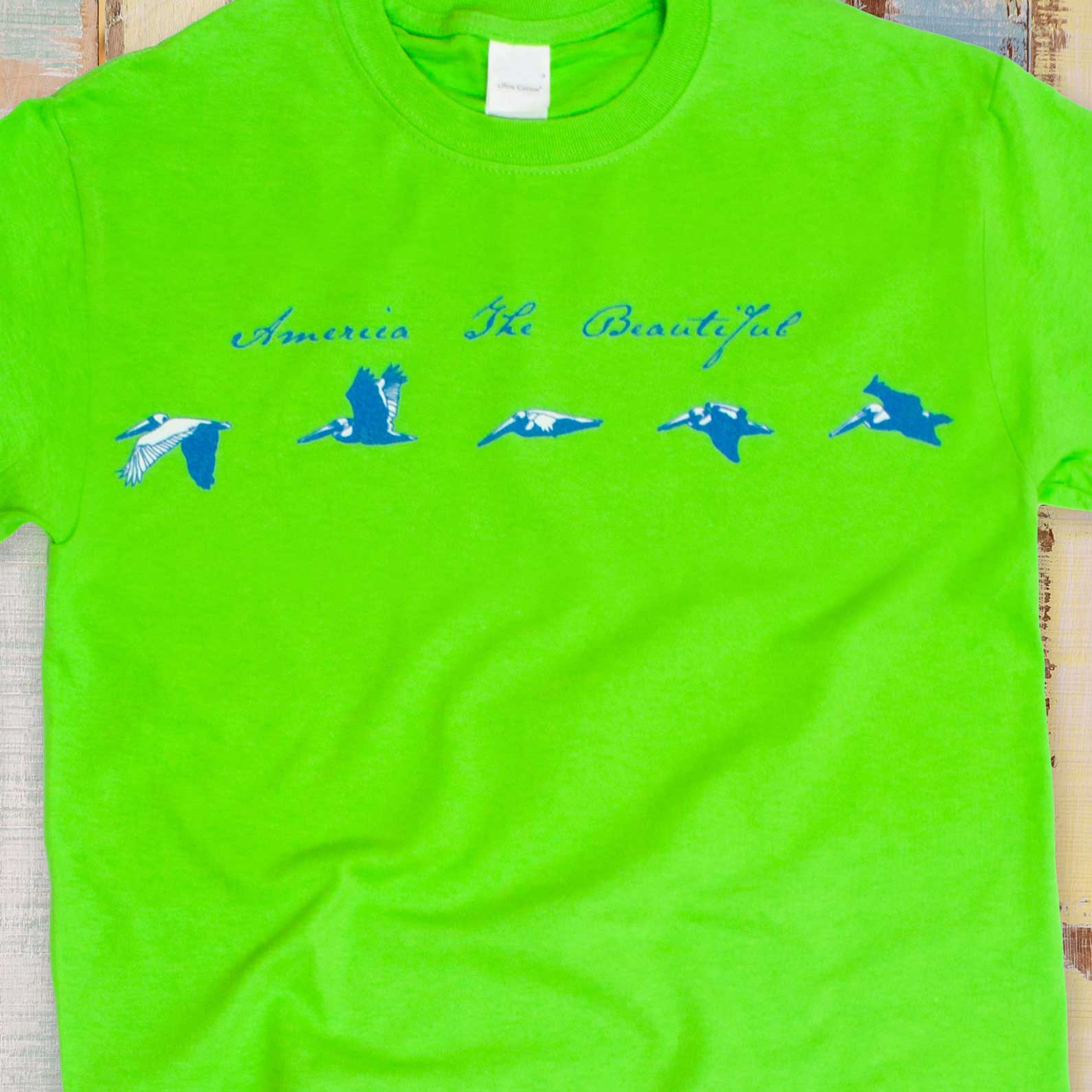 Surf Washed® Pelicans Flyby T-Shirt: Lime S