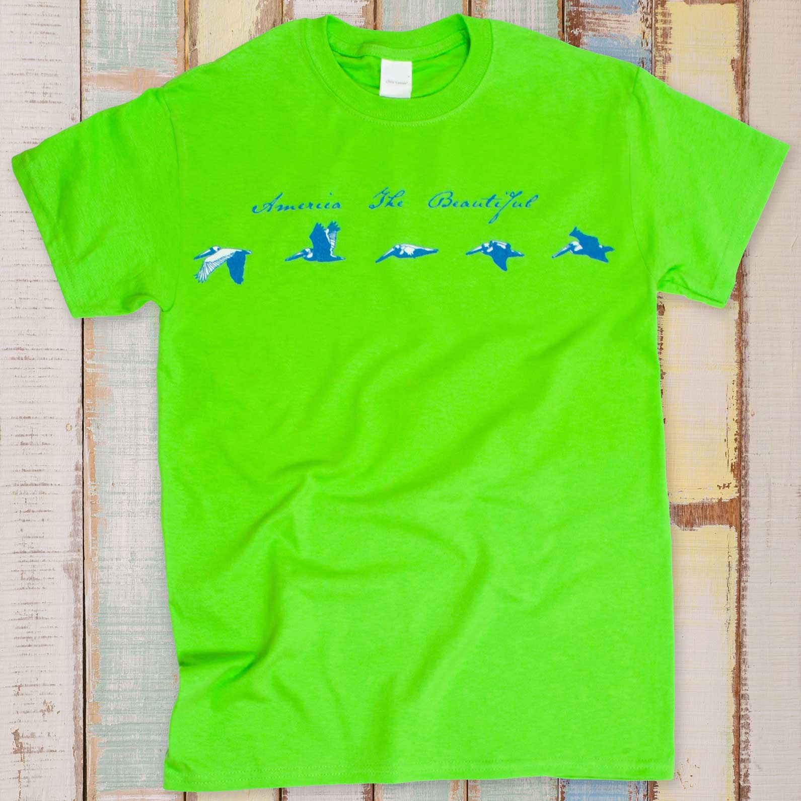 Surf Washed® Pelicans Flyby T-Shirt: Lime L