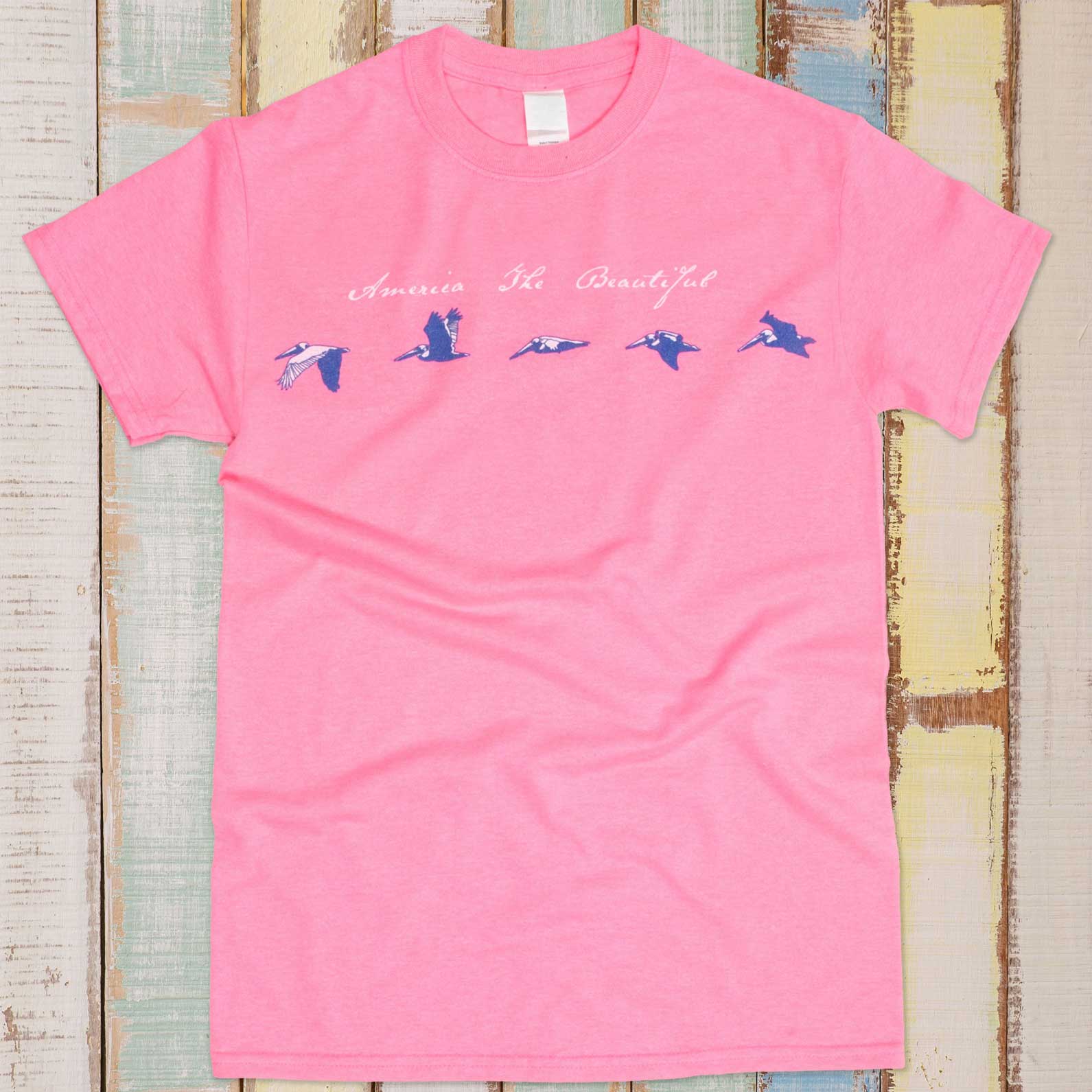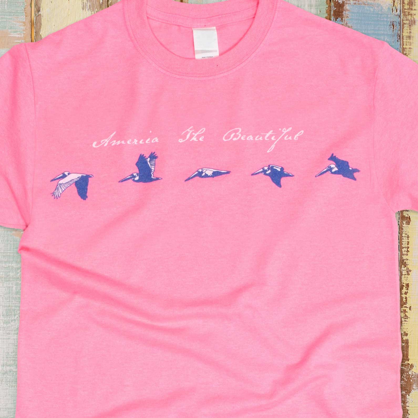 Surf Washed® Pelicans Flyby T-Shirt: Safety Pink L