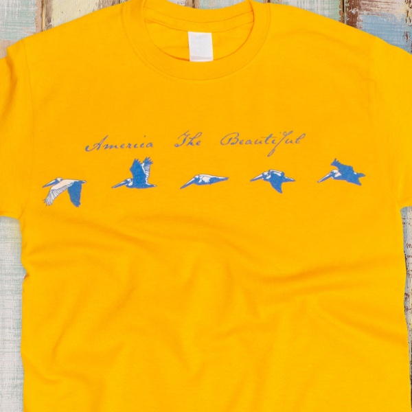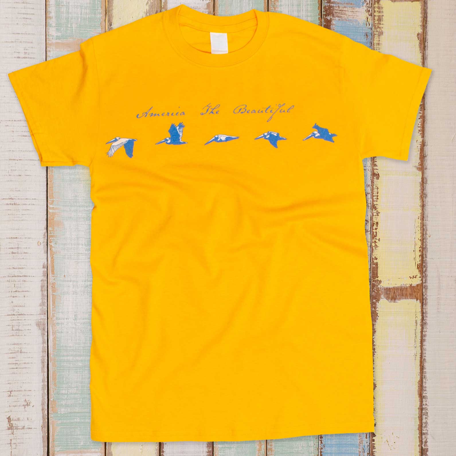 Surf Washed® Pelicans Flyby T-Shirt: Gold S