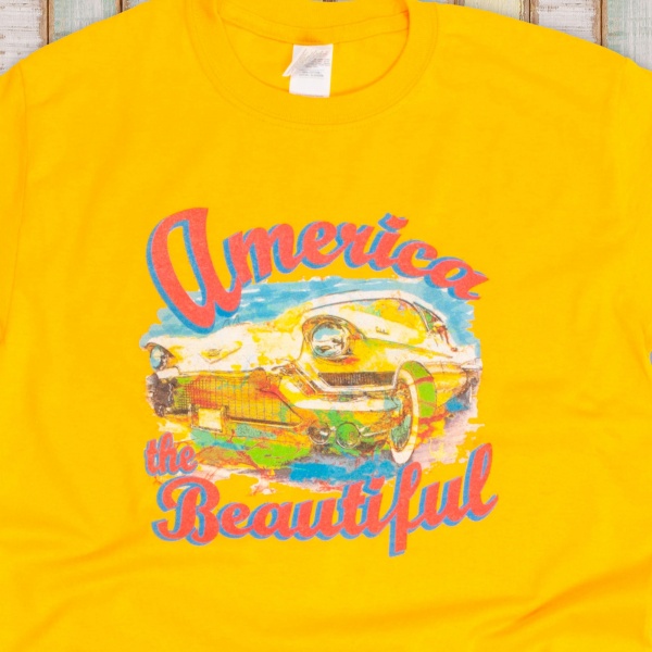 Start your engines on our America the Beatiful® classic Chrysler graphic T-Shirt.