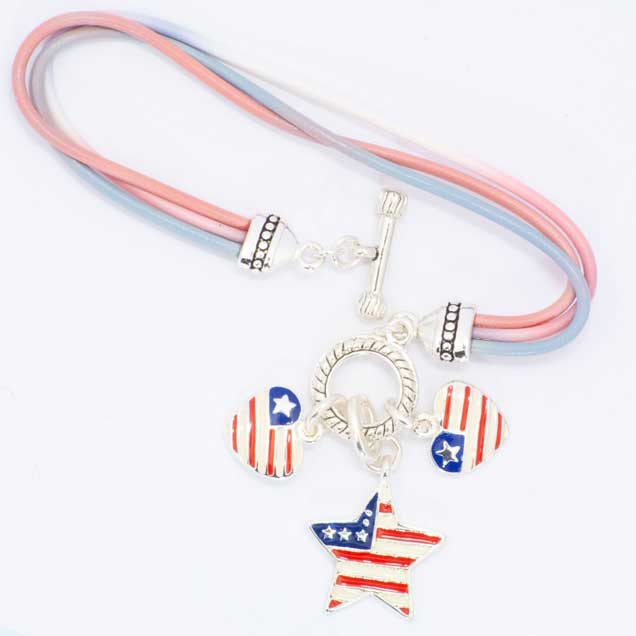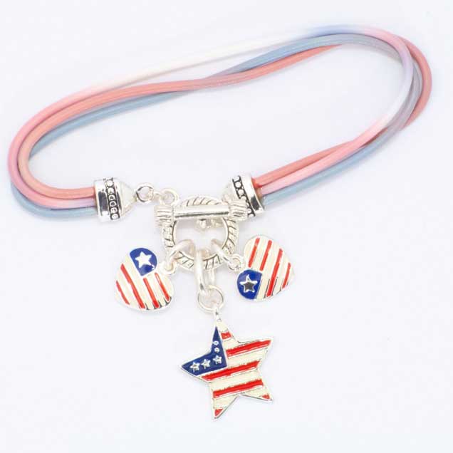 America Red, White and Blue colors Star and Hearts Bracelet.