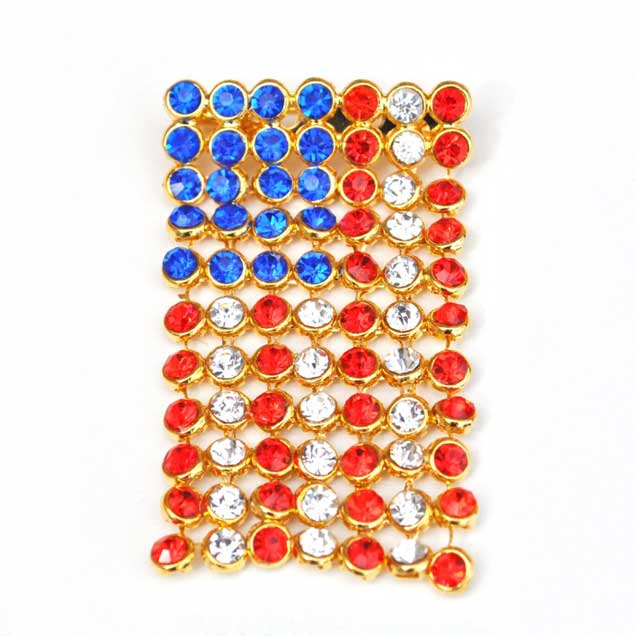 Free flowing liberty with our flexible red, white, and blue rhinestone pin!